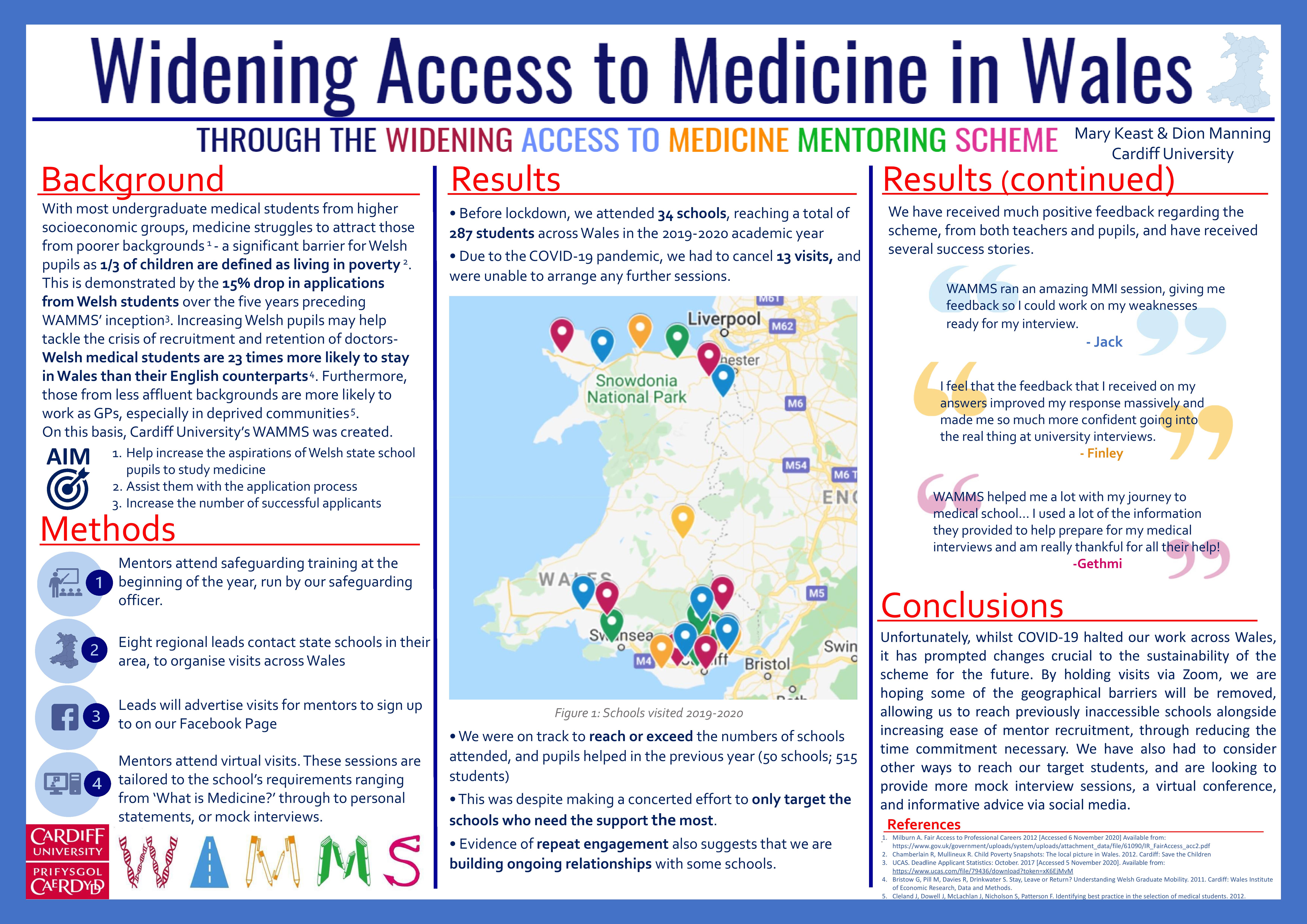 | Widening Access to Medicine in Wales: through the widening access to medicine mentoring scheme | Mary Keast & Dion Manning | ManningD3@cardiff.ac.uk |