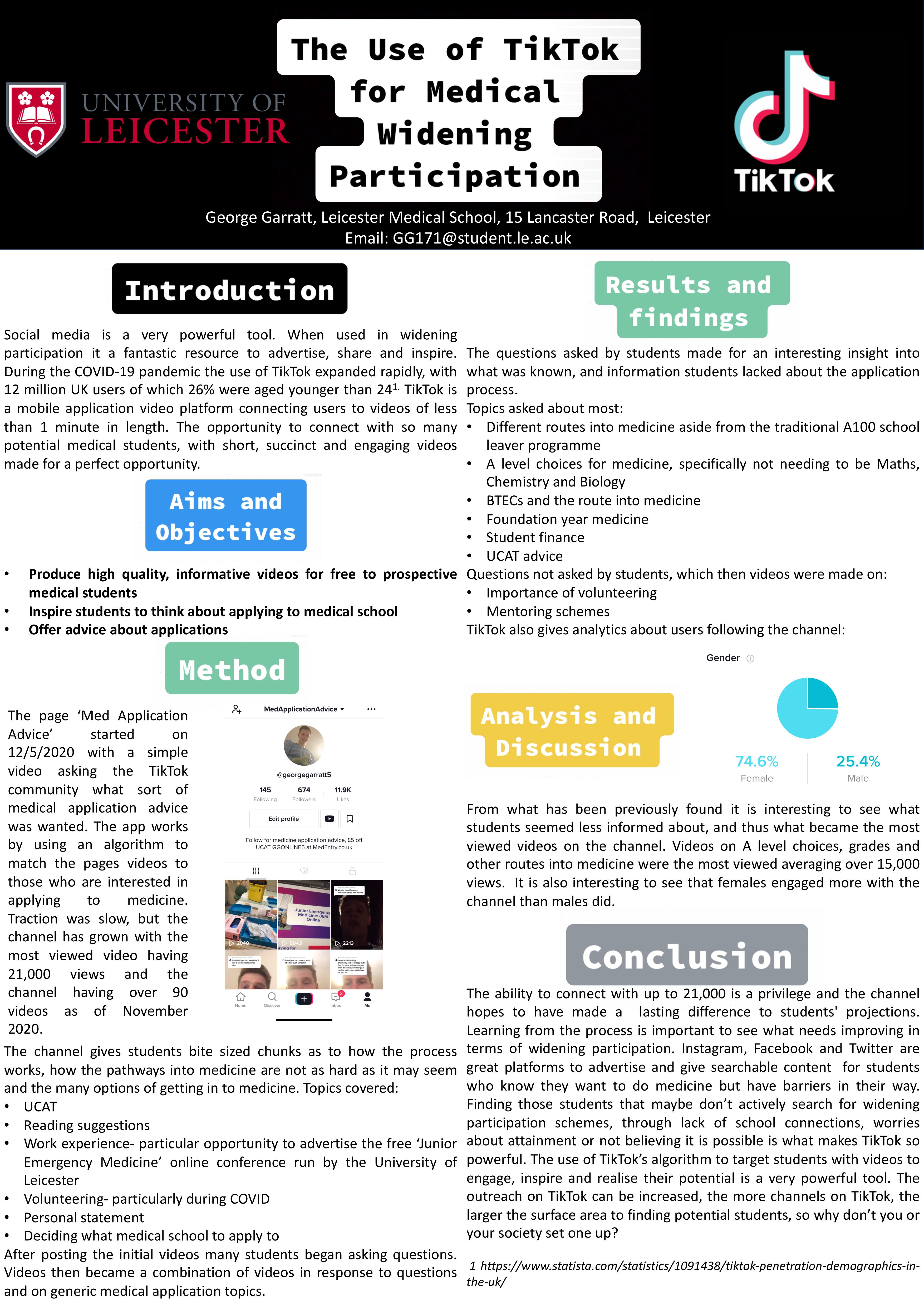 | The Use of TikTok for Medical Widening Participation | George Garratt | Gg171@student.le.ac.uk |