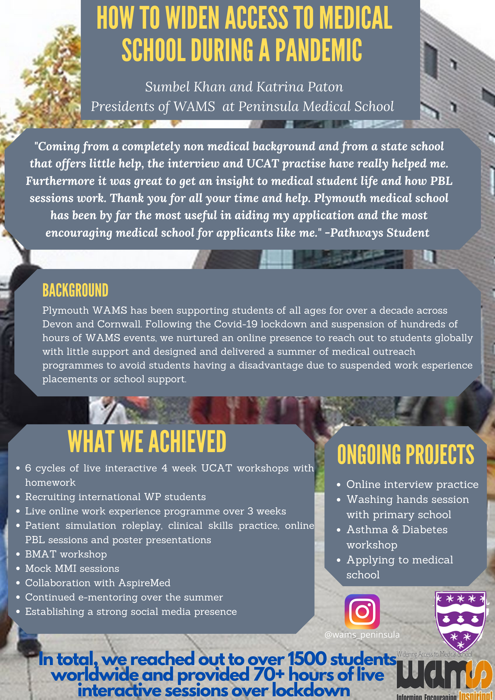 | How to widen access to medical school during a pandemic | Sumbel Khan & Katrina Paton | wams@plymouth.ac.uk |