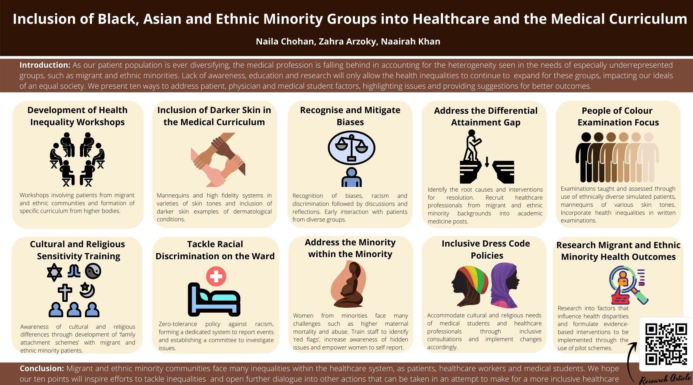 | Inclusion of Black, Asian and Ethnic Minority Groups into Healthcare and the medical curriculum | Naila Chohan, Zahra Arzoky & Naairah Khan | nchohan01@qub.ac.uk |